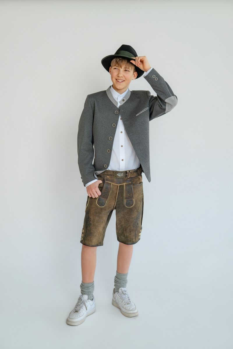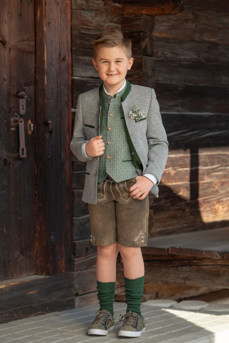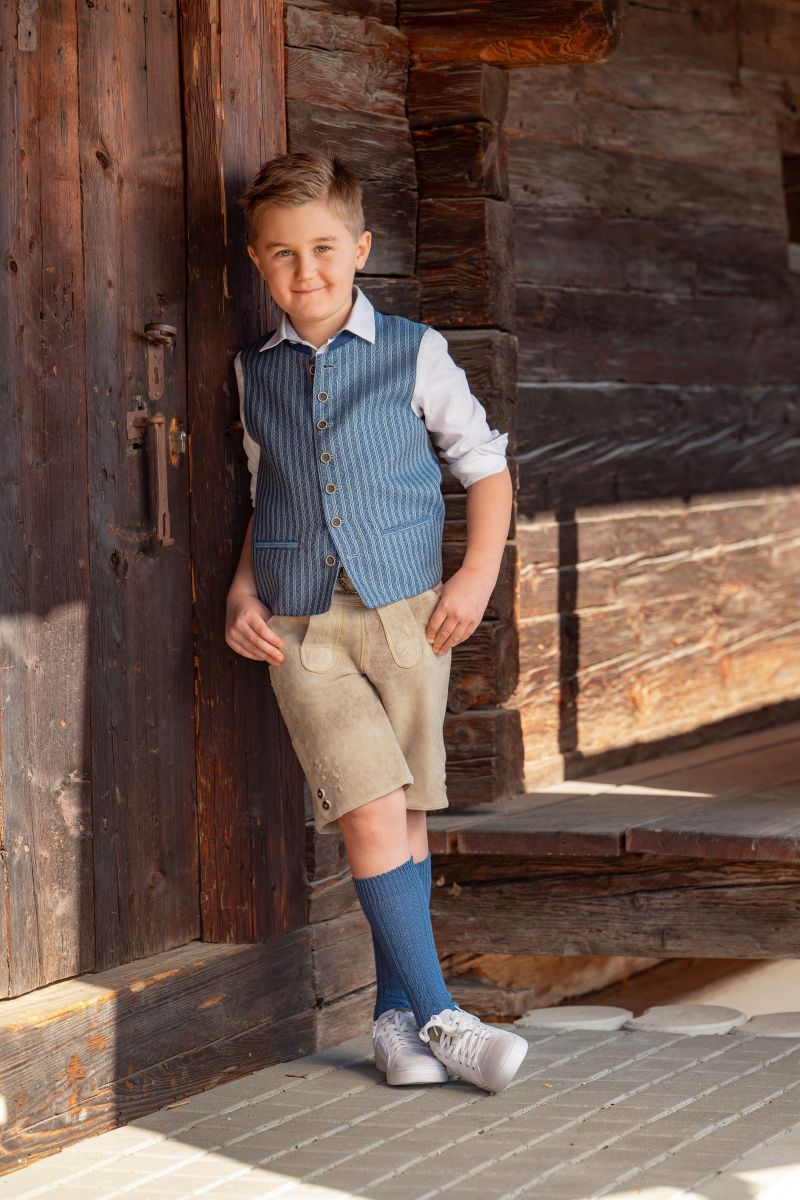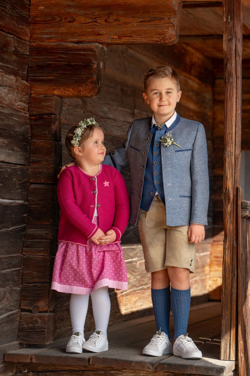 Die Kindertrachtenmode zeichnet sich im Gegensatz zur Erwachsenenbekleidung durch kreative Muster, bunte Farben und verspielte Details aus. Damit die Kleidung beim Spielen nicht zu schnell Schaden nimmt, besteht sie aus bequemen, strapazierfähigen Stoffen, die kaum knittern und leicht zu waschen sind. Lustige Aufdrucke und Applikationen sorgen für den nötigen Pepp. Unser Angebot umfasst Strickjacken, Westen, Hemden, Shirts, Schuhe, kurze Lederhosen und Kniebundlederhosen, Gilets, Dirndl, Dirndlblusen, Blusen, Stutzen, Socken und Strumpfhosen.